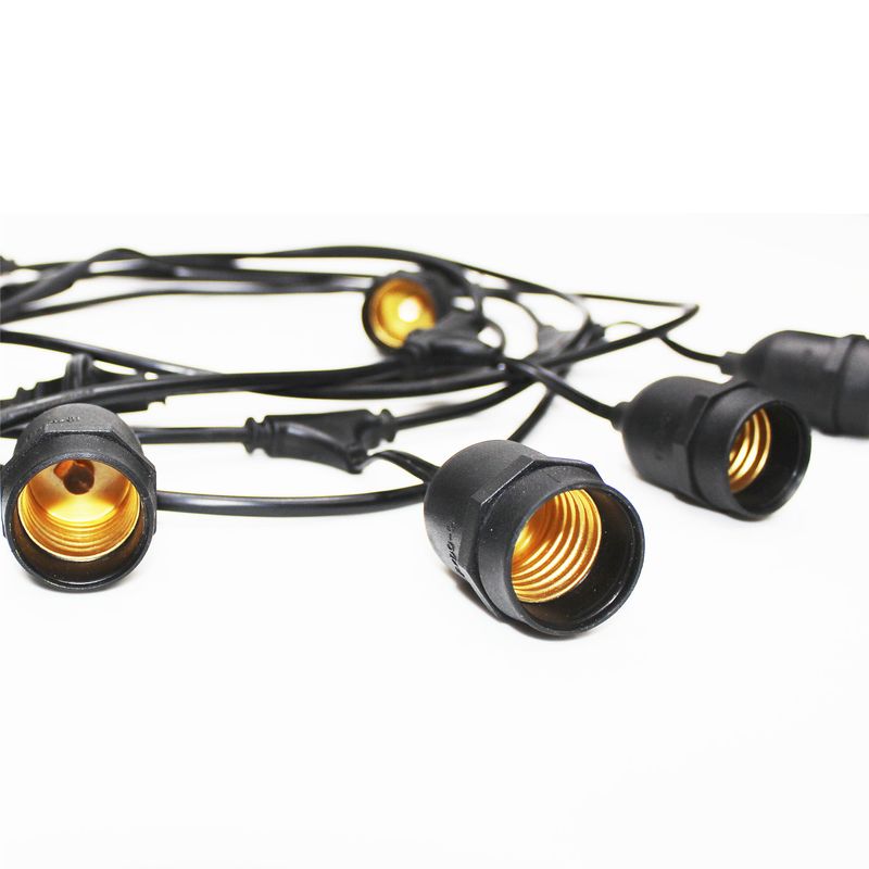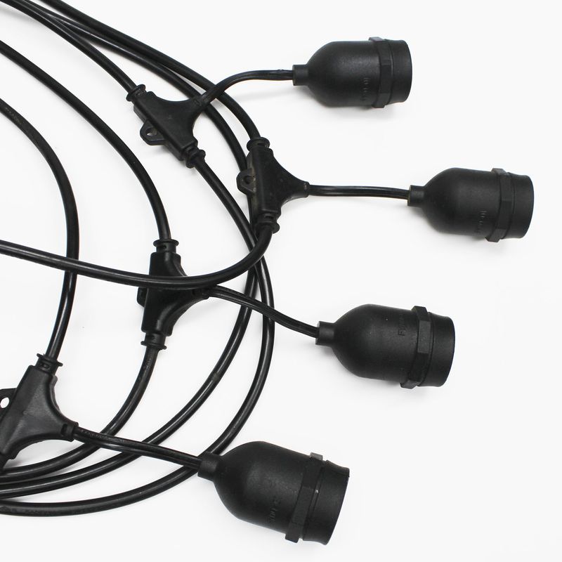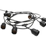 Cordão de Luz Cipro com 8 soquetes E27 e prolongador da Taschibra, perfeito para decorar ambientes internos e externos. Com 5 metros de extensão, oferece versatilidade para lâmpadas até 60W, criando um ambiente acolhedor e sofisticado com facilidade. Ideal para festas e eventos.
