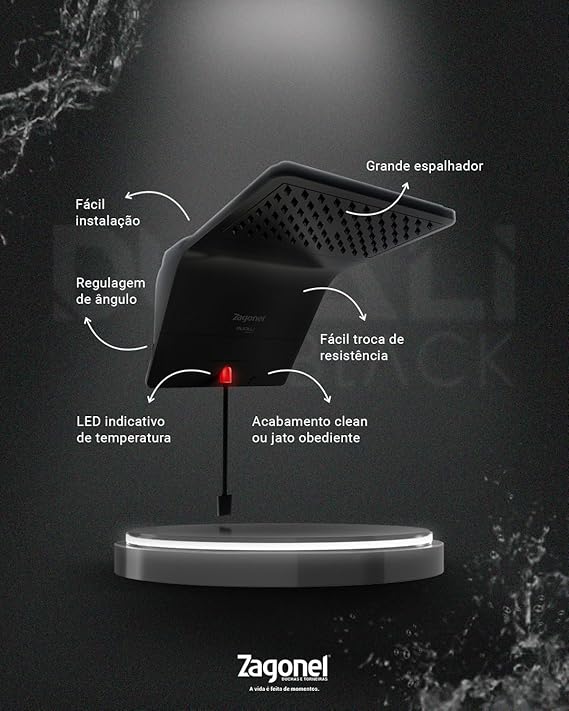 A Ducha Eletrônica Ducali Black 4400W 220V Zagonel oferece controle gradual de temperatura, jato uniforme e excelente desempenho mesmo com baixa pressão. Com design moderno, fácil instalação e resistência de troca rápida, proporciona banhos confortáveis e econômicos.