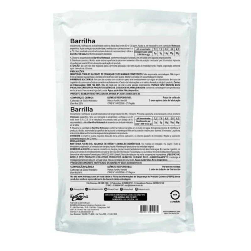 Elevador de pH Barrilha 2kg Hidroazul, ideal para ajuste do pH em piscinas, sistemas de tratamento de água e processos industriais. Eficaz na alcalinização da água, ajuda a equilibrar os níveis de pH, proporcionando maior conforto e segurança para os usuários. Produto de alta qualidade e rendimento.