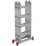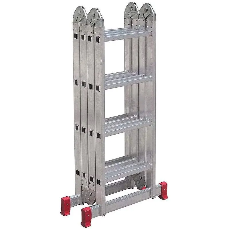 Escada Articulada 4x4 Degraus Alumínio Botafogo feita de alumínio garante leveza para fácil manuseio, mas resistência suportando até 150kg de carga. Além de poder usar de diversas posições. Contém 16 degraus ao todo. Ideal para sua obra e reparos. Imagem ilustrativa do modelo.