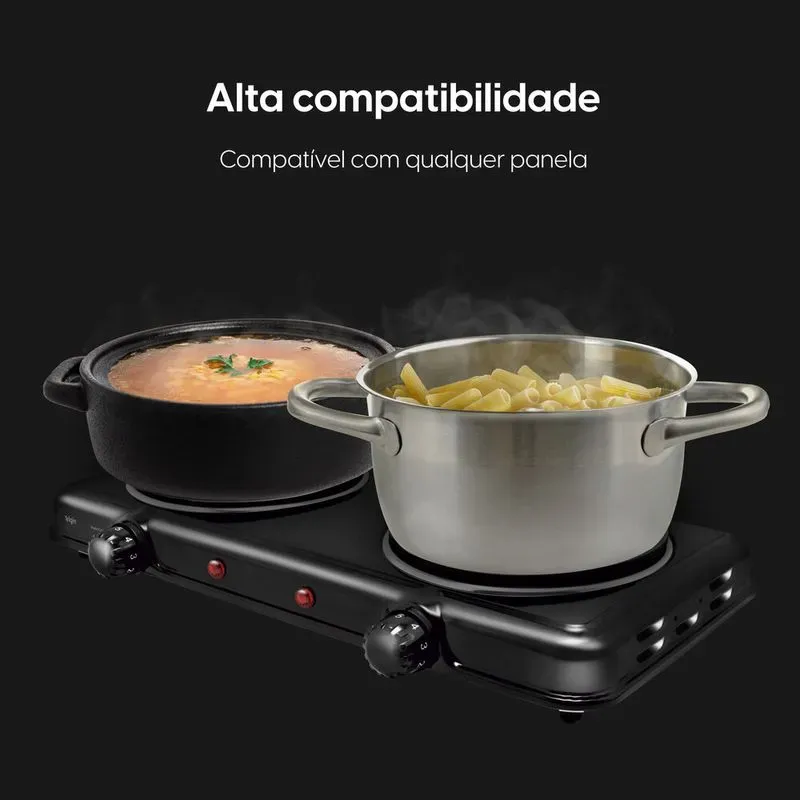 Praticidade e eficiência para o seu dia a dia. O Fogão de Mesa Portátil Elétrico 2 Bocas 2000W Elgin é ideal para quem busca mobilidade e desempenho, seja em cozinhas compactas, áreas gourmet, escritórios ou até em viagens. Com 2000W de potência distribuídos em duas bocas, proporciona aquecimento rápido e preparo ágil dos alimentos. Compacto e fácil de transportar, conta com controle individual de temperatura, oferecendo mais precisão e segurança no uso. O fogão elétrico Elgin é a solução perfeita para quem precisa de versatilidade, economia de espaço e praticidade na cozinha.