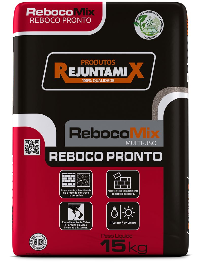 Reboco Pronto Cinza 15kg Rejuntamix composta de cimento, areia com granulometria definida com aditivos especiais. É indicado o uso para assentamento de alvenaria, revestimento de tetos e paredes de áreas internas e externas. Bases de aplicação em assentamento e revestimento de tijolos de barro, blocos de concreto ou cerâmico.