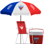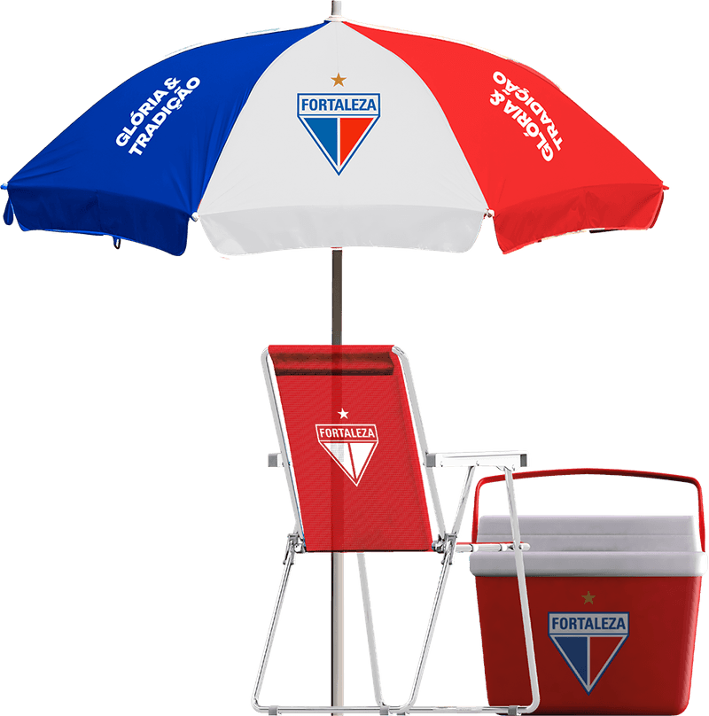 Kit completo para aproveitar praia, piscina ou lazer ao ar livre com conforto e praticidade. Conta com uma caixa térmica(cooler) 34L para conservar bebidas geladas, um guarda-sol em PVC/alumínio com ótima proteção e uma cadeira de praia tipo varanda. Visual vermelho com identidade Fortaleza Botafogo, resistente, funcional e fácil de transportar.