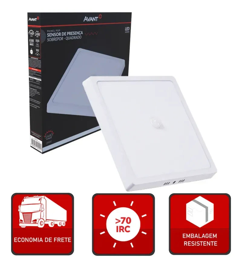 O Painel LED Pop Sensor 28cm 24W 6500K Sobrepor Quadrado Avant é ideal para quem busca praticidade e eficiência na iluminação de ambientes. Com formato quadrado e design moderno, proporciona luz branca que favorece a visibilidade no dia a dia. O sensor integrado agrega mais funcionalidade, tornando o uso mais conveniente em diferentes situações. Indicado para instalação sobreposta, é uma solução versátil para espaços residenciais ou comerciais. Seu tamanho de 28 cm oferece boa cobertura, contribuindo para uma iluminação uniforme e um ambiente mais organizado e funcional.
