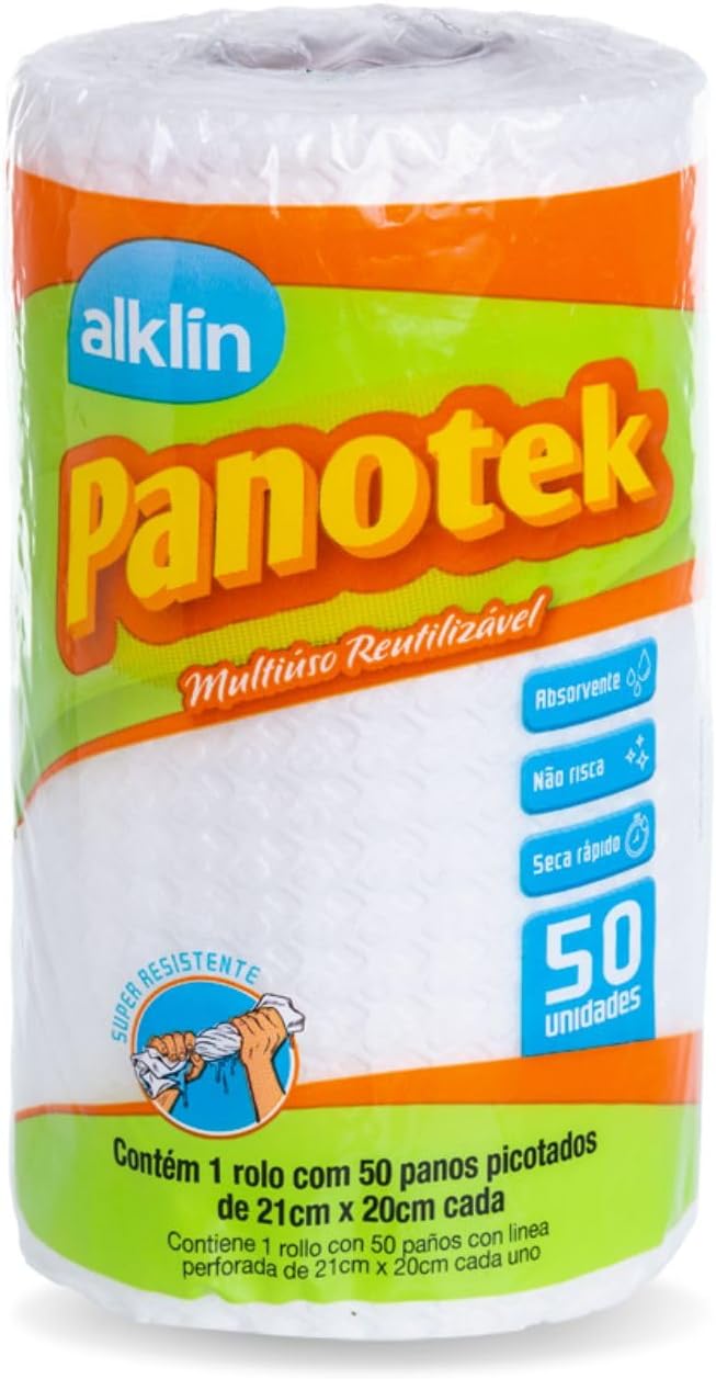 Pano Panotek Bobina 21x20cm com picote Alklin, com 50 unidades. Prático e higiênico, é ideal para uso diário. Com fácil destacamento, oferece alta absorção e eficiência na limpeza. Versátil e descartável, ideal para uso doméstico ou profissional.