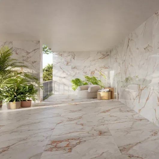 O Porcelanato 90x90cm Retificado Marmo Gold Cetim Tipo A é ideal para projetos que exigem elegância, modernidade e acabamento refinado.
