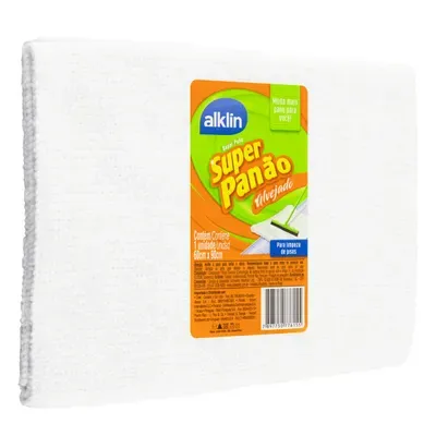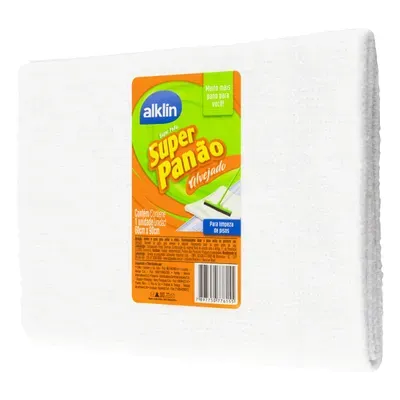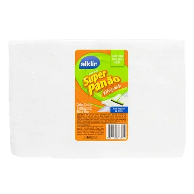 Super Panão 60x90cm Alvejado Alklin. Ideal para limpezas pesadas, oferece alta absorção e resistência. Reutilizável e eficiente, remove sujeiras sem riscar, sendo perfeito para uso em grandes superfícies no ambiente doméstico ou profissional.
